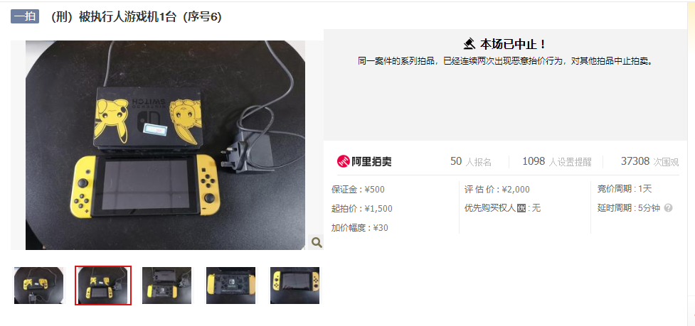 “同一案件的系列拍品,已經(jīng)連續(xù)兩次出現(xiàn)惡意抬價行為,對其他拍品終止拍賣。”根據(jù)平臺公告,受近兩日天價游戲王卡牌和U盤的影響,已中止對該持有人其他拍品的拍賣活動。