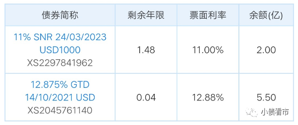 據公開資料,海倫堡上述美元債發行于2019年10月,當前規模5.5億美元,息票12.875%,將于今年10月14日到期。
