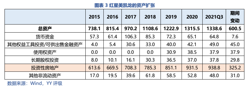 回顧美凱龍家居的這些年,作為家居賣場龍頭,2015年后總資產快速增加,這背后是權益融資與債務融資的雙增長。資金主要流向投資性房地產領域,重資產的擴張模式使得美凱龍成為“商業地產企業”,雖然已宣稱多年的“輕資產”轉型,但仍在增加自有商場數量,尚需投資規模仍較大。