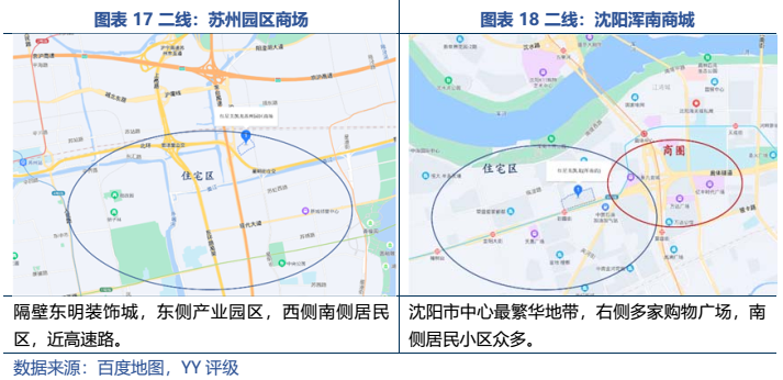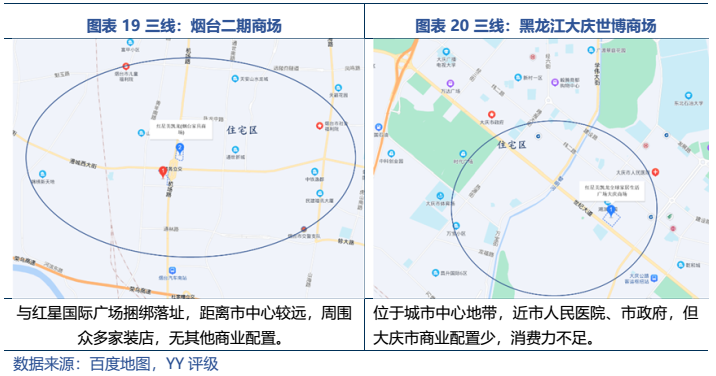 目前,即期財務壓力構成最核心的矛盾,短期來看銀行借款在抵押物支撐下得以滾續(但不排除在商場經營效益下滑趨勢下銀行斷貸或要求新增抵押物的可能);長期而言,傳統主營業務坪效走向下坡,或造成資產估值折損風險,而公司仍在擴建自有商場,委管收入逐年下降,且商品零售及家裝作為公司預期的新增長點仍有待觀望,資產質量的擔憂以至于對商業模式重估(店面租金高企、購買力不足的矛盾)。