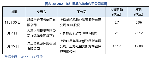 但是地產進程過半,資產質量決定后續企業的生存質量。美凱龍家居這種業態,也受其自身擴張、收縮和市場風格切換的影響(全屋定制、簡化清新風格)。2021年,紅星控股已“壯士斷腕”,出售自己的地產子公司——紅星企發,而旗下美凱龍家居也多次出售子公司股權,將自身業務版圖縮小回家居賣場。