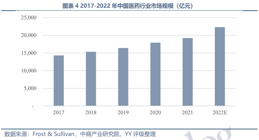 近年來,我國醫藥市場規模保持較快速度增長, 2021年達19,220億元。