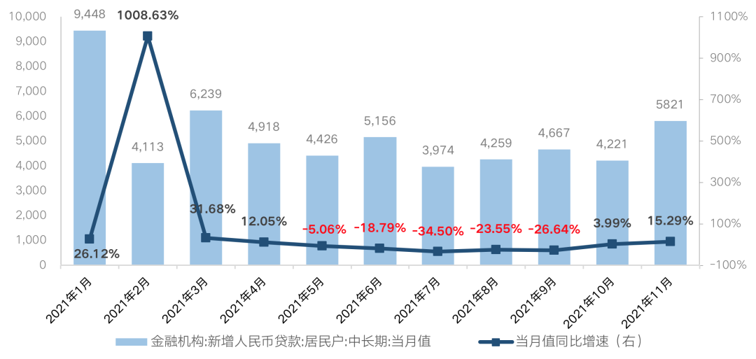圖:2021年1-11月居民中長期新增人民幣貸款