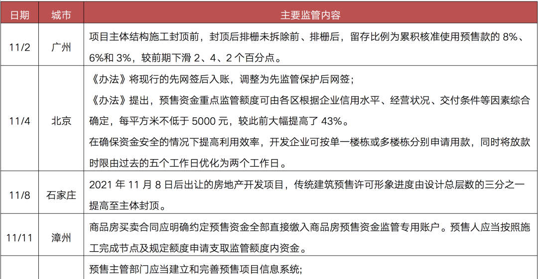 表:11月以來各熱點城市持續(xù)加碼預(yù)售資金監(jiān)管新規(guī)
