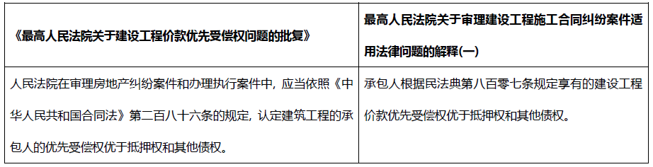 盡管物權(quán)優(yōu)于債權(quán)是民法的基本原則, 但是在特殊情況下, 出于對(duì)特別法益的保護(hù), 法律對(duì)某些特殊債權(quán)予以特別保護(hù)甚至使其有優(yōu)于擔(dān)保物權(quán)的效力, 在房地產(chǎn)行業(yè), 抵押權(quán)人需要特別注意的就是建設(shè)工程價(jià)款的債權(quán)。拿到了房產(chǎn)/在建工程抵押權(quán)的債權(quán)人同樣需要為建設(shè)工程價(jià)款“讓路”。