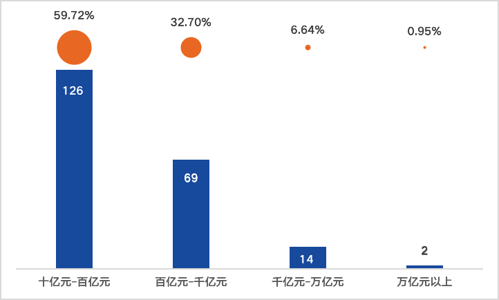 (三)近57%公司營收規(guī)模處在十億元到百億元之間