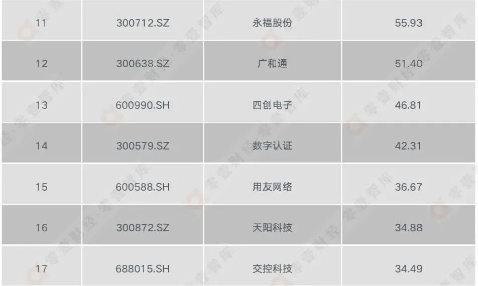 表:區(qū)塊鏈上市公司年均價TOP20