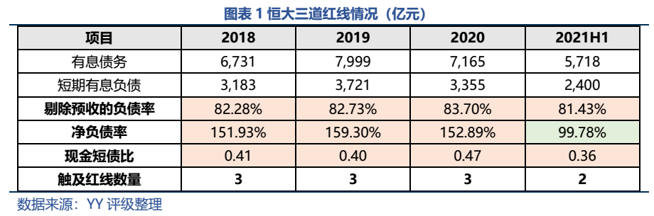 (2)降負債情況:截至21年6月末,中國恒大有息債務規模5,718億元,較去年同期下降了1,447億元。三道紅線指標也都實現降低,其中凈負債率已經擠入及格線。