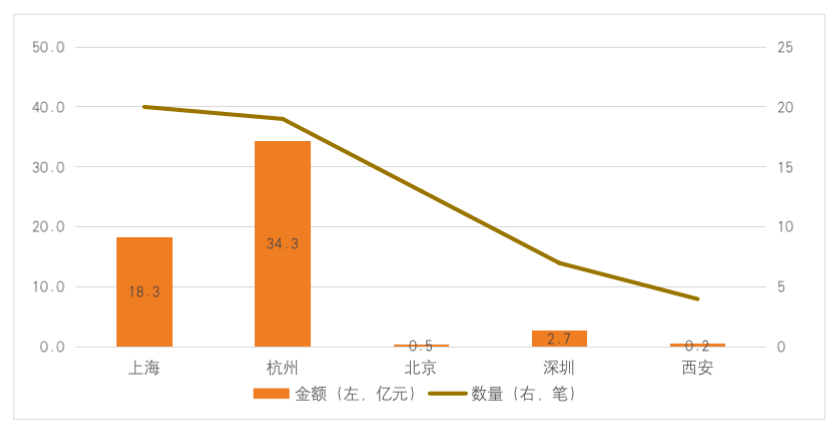 獲投隱私計算初創(chuàng)公司的注冊地主要在北京、上海和杭州3個城市,其次是深圳和西安。北京有7家公司獲得融資,但融資總額僅0.5億元;上海有7家公司獲得20輪融資,杭州有6家公司獲得19輪融資,二者融資總額分別為18.3億元和34.3億元。杭州互聯(lián)網(wǎng)基因強大,同盾科技、趣鏈科技等數(shù)據(jù)服務(wù)類公司起步早、發(fā)展快,整體發(fā)展更為成熟。