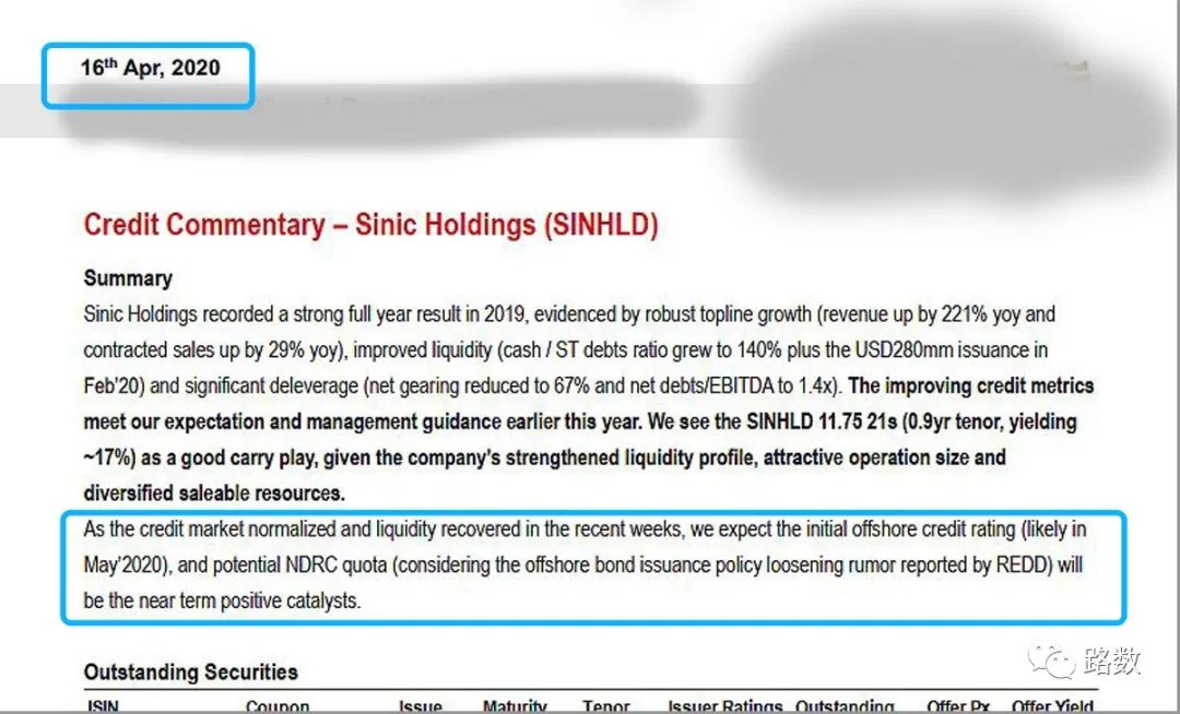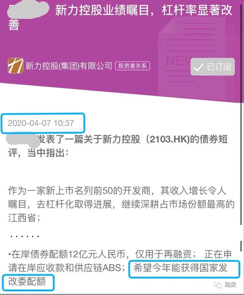 至少有3家機構在2020年4月發(fā)布的研究報告中明確表明:當時新力地產正處于申請發(fā)行外債額度中。注意,是進行時,而非完成時。▼
