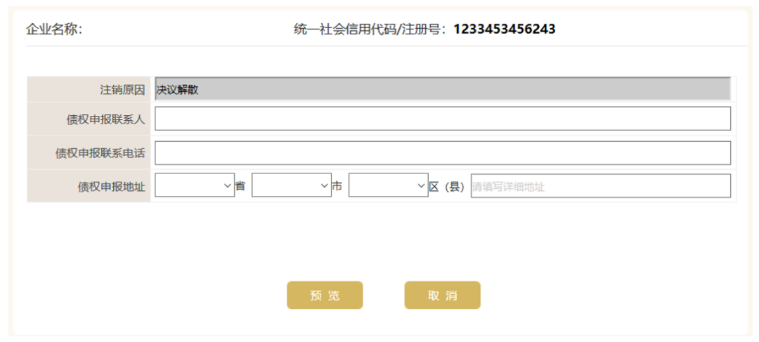 4.2錄入債權申報聯系人等相關信息,點擊“預覽”