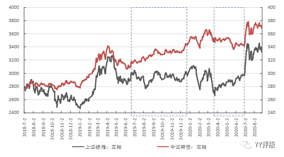 案例:2019年下半年,A股是震蕩行情,但轉(zhuǎn)債整體是上漲行情,溢價率不斷抬升;2020年二季度,A股是穩(wěn)步反彈的行情,但轉(zhuǎn)債卻是下跌行情,溢價率被大幅壓縮。