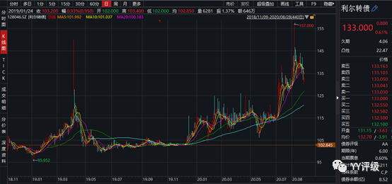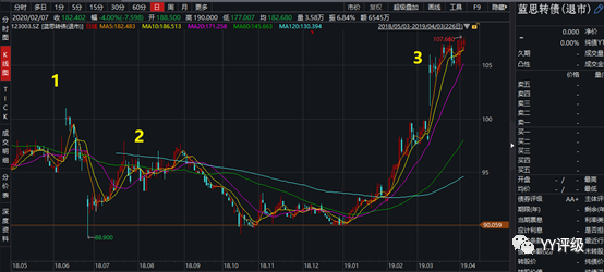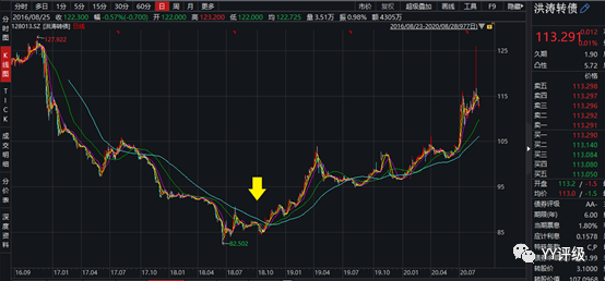 案例:較典型的案例是大族轉(zhuǎn)債,公司是國內(nèi)激光設備的頭部企業(yè),屬于電子板塊,彈性足夠大,雖然轉(zhuǎn)股價值長期在100元以下較深的位置,但2020年初轉(zhuǎn)債仍能漲到120以上。