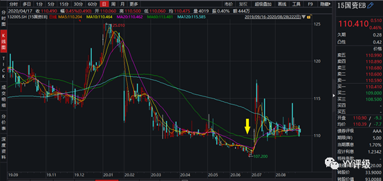 15國資EB今年6月底成交在107.5左右,純債溢價率在0附近,可以說是鐵底,而7月初銀行保險的估值修復迅速為其帶來收益。