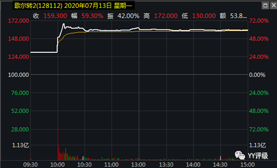 案例:歌爾轉(zhuǎn)2于2020年7月13日上市,正是股市漲勢強勁的時候,正股是優(yōu)質(zhì)的蘋果概念股,不出意外地集合競價直接熔斷在130,10:00重新開始交易,此時轉(zhuǎn)股價值已經(jīng)到了145,加上市場給予優(yōu)質(zhì)轉(zhuǎn)債的溢價,轉(zhuǎn)債的價格有可能達到160以上,而10:00前下買單的投資者可以發(fā)現(xiàn),第一筆竟然成交在137.44,按當天收盤價計算,盈利16%。與此類似,龍大轉(zhuǎn)債第一筆成交在131,欣旺轉(zhuǎn)債第一筆成交在133,均可當天實現(xiàn)可觀盈利。
