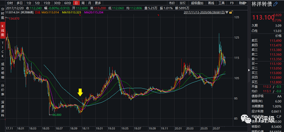 案例3:林洋轉(zhuǎn)債在2018年10月跌的最慘時到期收益率到過4.8%以上,這家公司雖是民企,但財務穩(wěn)健,債務壓力小,此時如果以純債替代的思路看它,則具有非常好的配置價值。