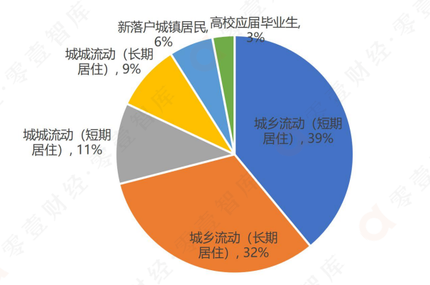 根據(jù)新市民產(chǎn)業(yè)與創(chuàng)新研究院對新市民群體構(gòu)成的畫像,數(shù)據(jù)顯示新市民群體以城鄉(xiāng)流動人口為主,占比約七成,其中高校畢業(yè)生及新落戶城鎮(zhèn)居民占比僅一成,這意味著外來務(wù)工人員是新市民群體的主要構(gòu)成。