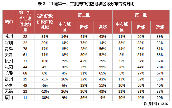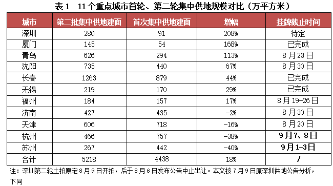 規模變動:第二輪集中供地規模高于首輪
