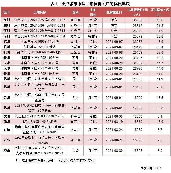 重點地塊:杭、深、津、蘇優質地塊較集中