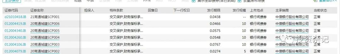 你看看發(fā)行期限這一欄,最短的是0.0274年,這到底是多長(zhǎng)時(shí)間呢?0.0274*365=10天,最長(zhǎng)的20南通城建SCP003是0.0767年,這個(gè)是多長(zhǎng)呢,0.0767*365=27.99天,也就是28天。你看看,在這個(gè)案例中,發(fā)債業(yè)務(wù)搞成了最短七天、最長(zhǎng)28天的資金品種,雖然SCP只要期限不超過270天就可以,并沒有禁止這種超短期限,但是發(fā)這么短的債圖個(gè)啥?對(duì)于投行來(lái)講,我覺得就是想做大流量,沖沖規(guī)模,年底啊之類的時(shí)點(diǎn)在沖下規(guī)模排名。對(duì)于企業(yè)來(lái)講,短貸長(zhǎng)用,降低資金成本,但是老是這么搞,萬(wàn)一規(guī)模搞大了,就怕哪天續(xù)不上就尷尬了。