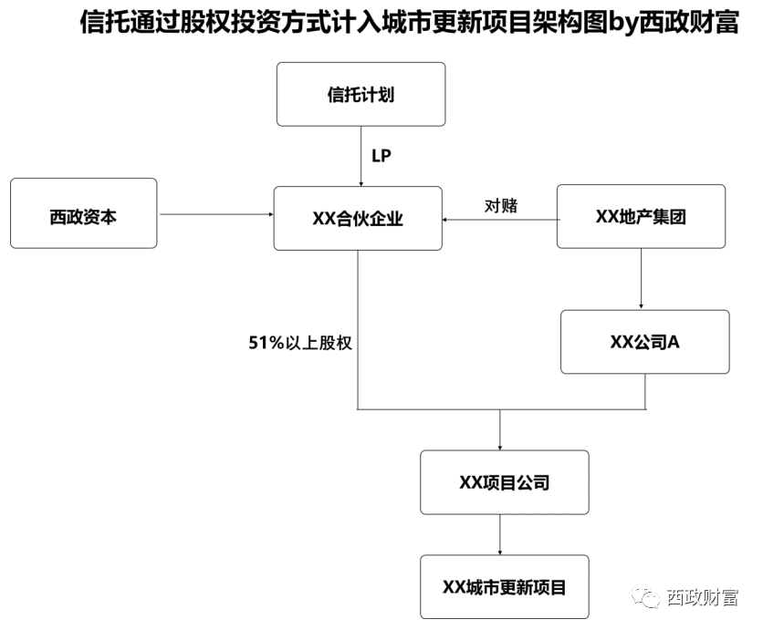 在項目土地款支付完畢的情況下,對于滿足投資條件的項目和主體(白名單制),一些信托機構仍舊可以通過股權投資方式(優先股)進行合作。以股權投資方式合作,在投后管理、風控以及對項目的把控方面則比以往更為嚴格。以下以我們財富中心操作的股權投資類項目為例予以說明: