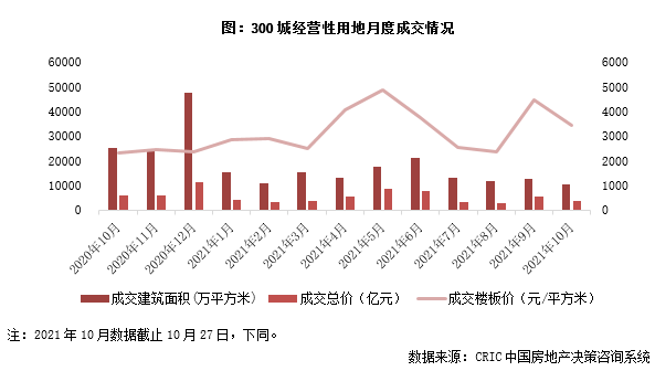 10月,樓市延續(xù)9月低迷行情,土地市場本月溢價率創(chuàng)下歷史新低。