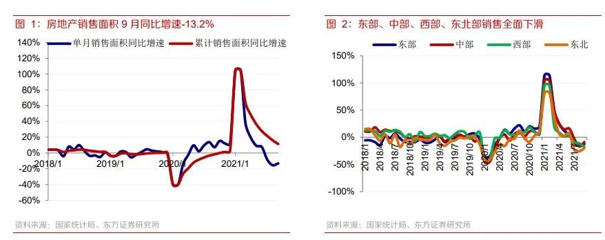 第二,單價下滑。東方證券計算9月銷售均價為9758元/平米,同比下滑3.0%,環