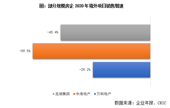 其一,2020年受疫情影響,房企境外項目的銷售業(yè)績呈顯著下滑。其中,中海地產(chǎn)境外項目銷售金額由2019年的111.89億元降至45.3億元,同比下降59.5%;萬科境外項目銷售金額同比下降29.2%,境外項目銷售金額占比由2019年的0.14%降至0.08%;此外,綠地2020年海外項目因疫情影響,銷售周期和開發(fā)周期進一步拉長,導(dǎo)致成本增加及折現(xiàn)時間加長,共計提跌價減值損失9.91億元。