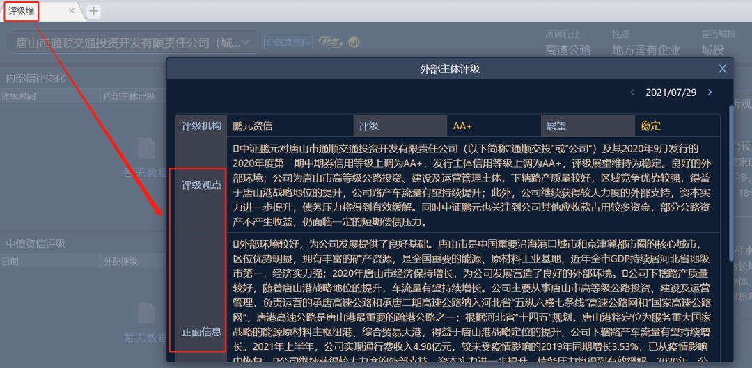 在如此艱難的情況下,唐山通順交通投資開發(fā)有限責(zé)任公司(以下簡(jiǎn)稱“通順交投”)為眾多城投公司中的佼佼者,2021年7月30日公開披露,公司的主體信用級(jí)別由AA上調(diào)至AA+,成為2021為數(shù)不多評(píng)級(jí)上調(diào)的城投公司之一。