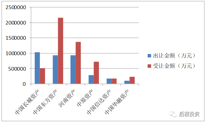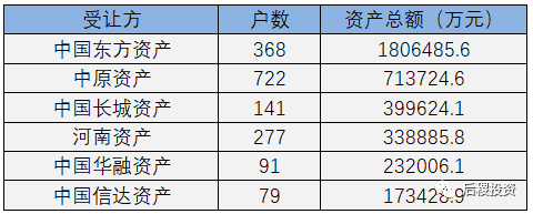 從上圖看,19年東方資產受讓銀行資產體量最大,所占比重接近一半。
