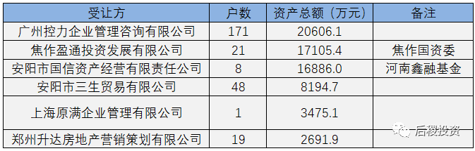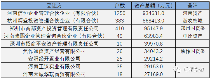 從上圖看,長城資產、東方資產和河南資產出包量位列前三,但總成交金額差別不大。