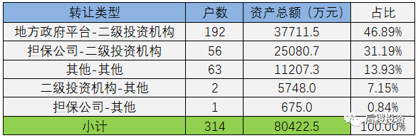 按轉讓及受讓主體類型分(只考慮有明確債權金額部分):