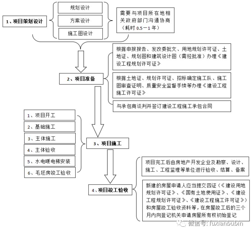 房企的一般項目開發銷售流程,概括為土地獲取、開發建設、銷售(預售)三個階段。