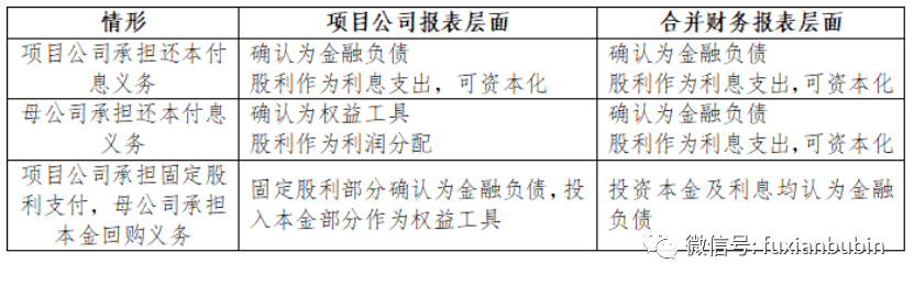 在實際業務中明股實債獲得的資金記入所有者權益,但其真實列報屬性根據還本付息義務的主體不同有所不同。根據現行會計準則,投資在不同的會計主體層面列報屬性可能有所不同(如下表所示)