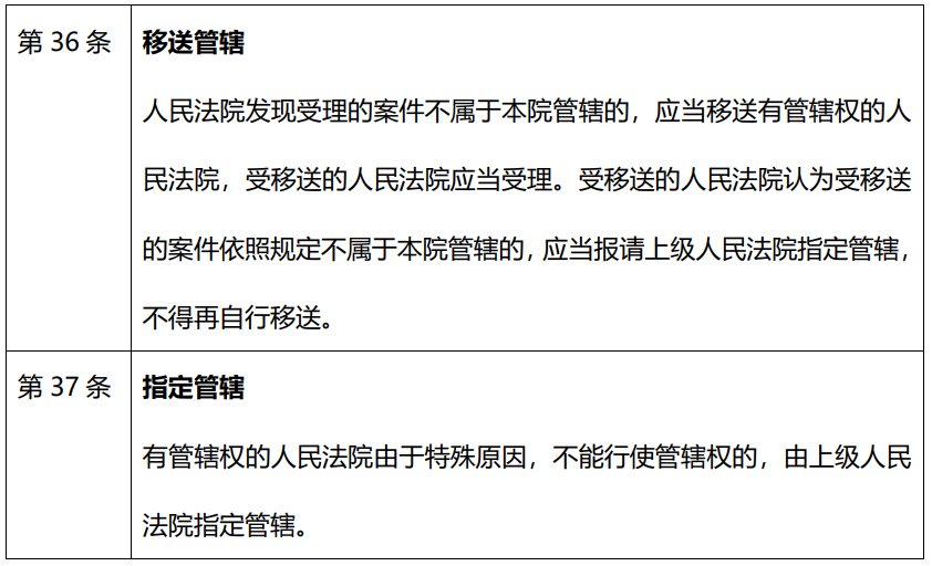 在我們處理的案件中, 大部分法院裁定都是通過(guò)援引《民事訴訟法》第三十六條、三十七條的方式移送管轄的, 其條文如下: