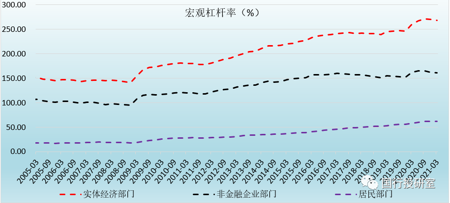 1、2020年為應(yīng)對疫情,宏觀杠桿率大幅抬升(實(shí)體經(jīng)濟(jì)部門、非金融企業(yè)部門和居民部門的杠桿率年內(nèi)最高分別上升24.70個(gè)百分點(diǎn)、13.30個(gè)百分點(diǎn)和6.10個(gè)百分點(diǎn)),因此自2020年下半年以來,降低宏觀杠桿率基本上就已經(jīng)成為政策導(dǎo)向,實(shí)際上自2020年三季度以來,宏觀杠桿率已經(jīng)連續(xù)兩個(gè)季度下降了。