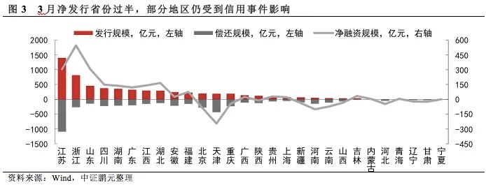 三、過(guò)半數(shù)省份實(shí)現(xiàn)城投債凈發(fā)行,天津、河南等地再融資較為困難