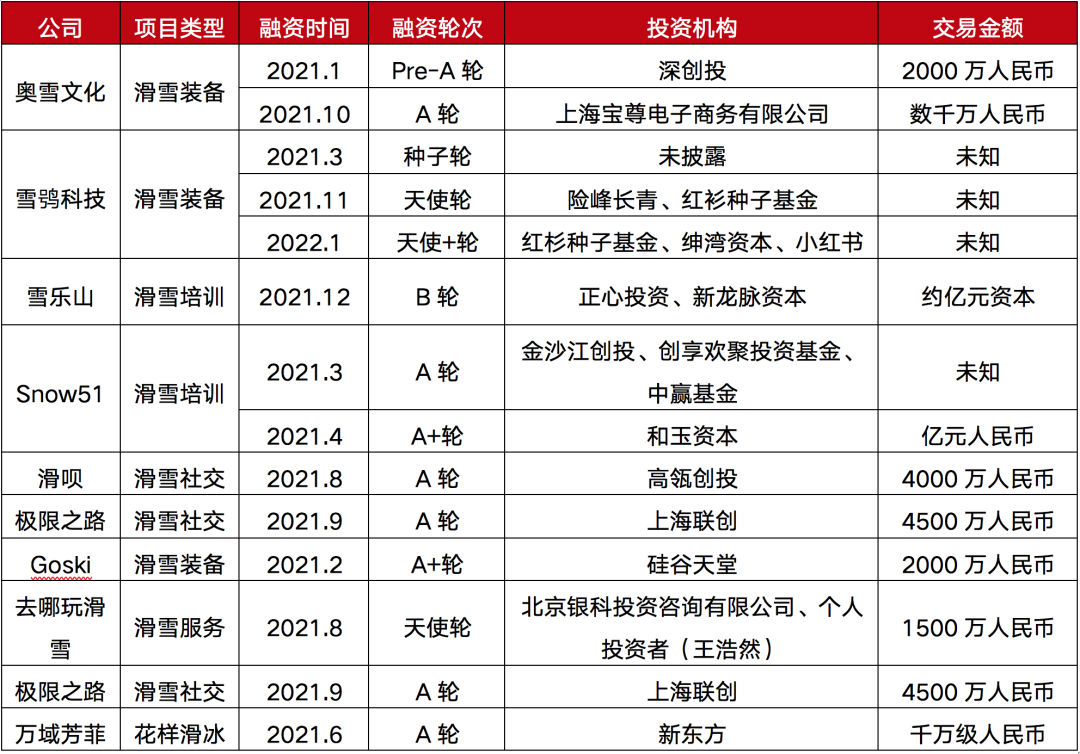 表:2021年冰雪賽道融資項目