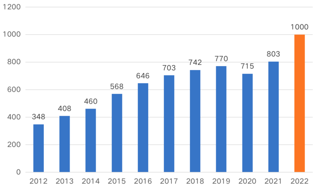 國家體育總局相關數據顯示,2015年全國滑雪場數量為568家,2019年這個數字達到了770家,由于2020年疫情,滑雪場規模出現小幅下降,減少至715家,預計2022年滑雪場數量將實現新一輪增長,全國范圍內滑雪場數量將達到1000余家。