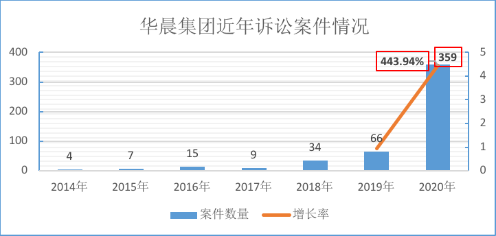從公開查詢到的涉及華晨集團的訴訟案件已明確表明了這一點。2020年華晨集團涉案數量激增,從2019年的66件增加至2020年的359件,增長率443.94%,其中華晨集團作為被告或被申請人身份的案件數量達90%。而這還只是已經公開的訴訟案件,未公開的仲裁案件或潛在的案件肯定也不在少數。