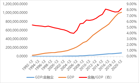 另外一個維度則是房地產+建筑業的泛房地產行業占比,這個口徑缺失了有關上下游拉動如鋼鐵、水泥、混凝土、建材、家居、家電等,但是建筑業的話也含基建,所以兩者一減一增,簡單作為房地產口徑的衡量指標,可以看出經濟體以鋼筋混凝土的房子作為衡量,整體2020年末占比接近14.52%,意味著整個房地產對于分配環節蛋糕的切分增幅巨大。