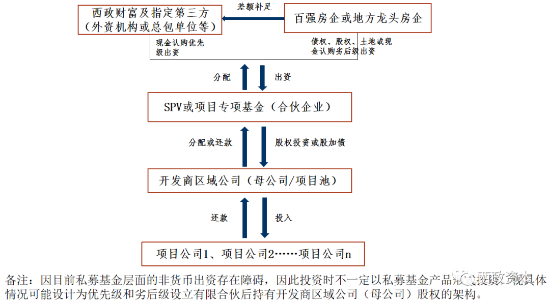 在我們今年做的募集業(yè)務(wù)中,一些總包單位或材料供應(yīng)商的“前融+總包或材料供應(yīng)”業(yè)務(wù)非常值得關(guān)注。以總包單位為例,這類施工單位對單個項目的配資金額一般不超過1億左右,1億配資一般對應(yīng)4倍左右價款的工程承包量,也即總包單位提供1億的前融資金需對應(yīng)取得4億的工程量或工程承包價款,其中總包的商務(wù)條件按市場行情具體商定,總包單位提供的配資款的成本一般在年化12%左右,融資期限靈活,總包單位可以不持有股權(quán),具體由我們持有股權(quán)并負責(zé)投后管理。值得一提的是,因提供配資款的施工單位或材料供應(yīng)商可承接的具體施工內(nèi)容或材料供應(yīng)種類有所差異,比如有些只能做防水、裝飾或只能提供板材、門窗、幕墻,因此配資款與工程量的配比會因為承包方的承包內(nèi)容差異而有所區(qū)分,這種情況下就需要開發(fā)商的融資部門協(xié)助解決項目其他部分承包施工的溝通和協(xié)調(diào)問題。