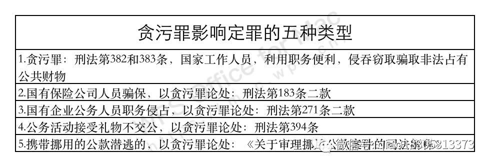 一、貪污罪的五種類型