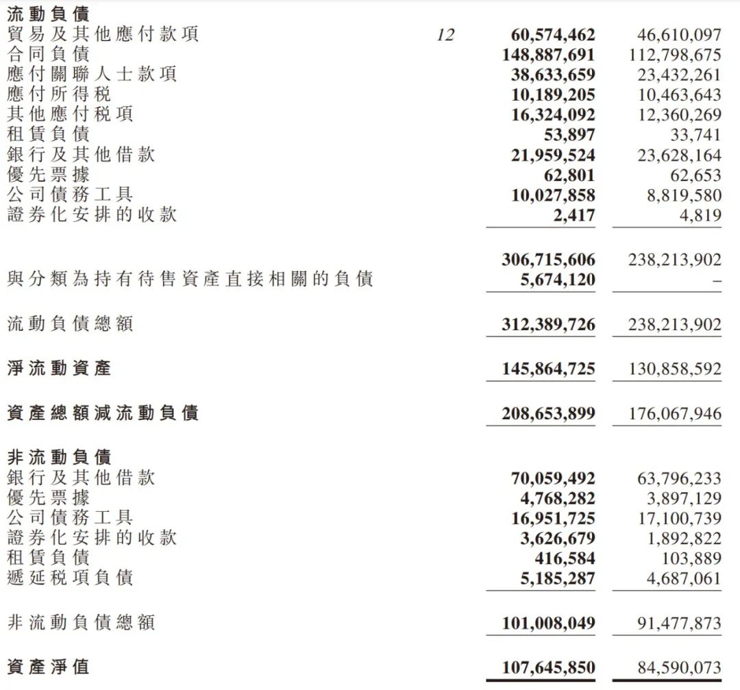 截至2021年末,綠城中國總負債4133.98億元,同比增加25.39%。其中流動負債同比增加31.1%,為3123.90億元;非流動負債同比增加10.4%,為1010.08億元。