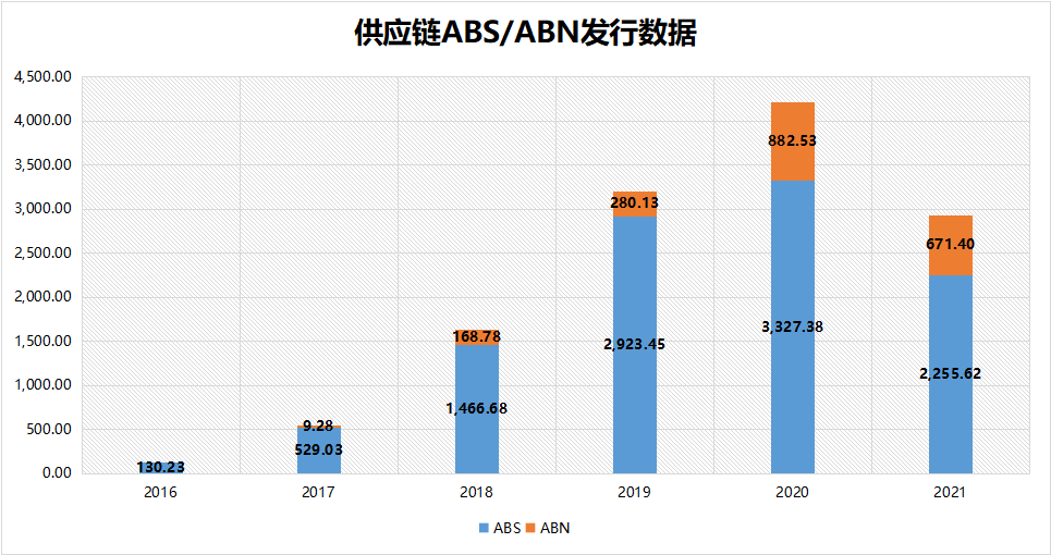 2016年7月,平安證券成功發行業內首單供應鏈ABS“平安證券-萬科供應鏈金融1號資產支持專項計劃”并榮獲2017年“深圳市金融創新獎”及華爾街見聞的“年度卓越證券產品”等多項榮譽。截至2021年9月15日,滬深交易所及銀行間市場發行的供應鏈ABS/ABN規模超過12,644.51億元。