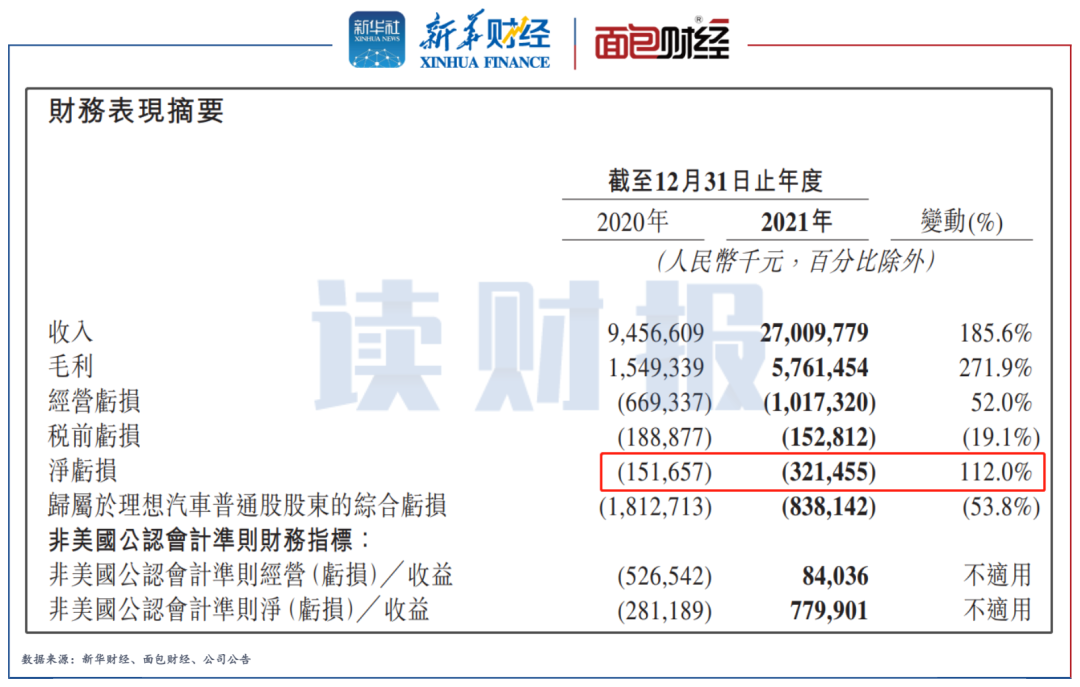 幾家造車新勢力企業(yè)中,理想汽車率先交出2021年度業(yè)績答卷,虧損同比擴大近一倍。