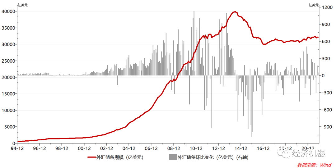 圖3 外匯儲備規模及月度變化