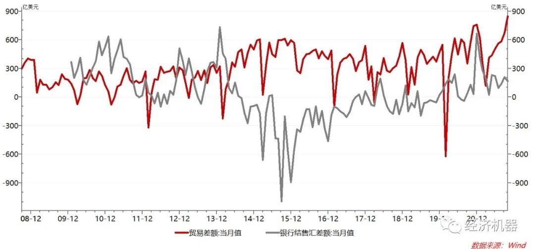 圖4 貿易差額與銀行結售匯差額