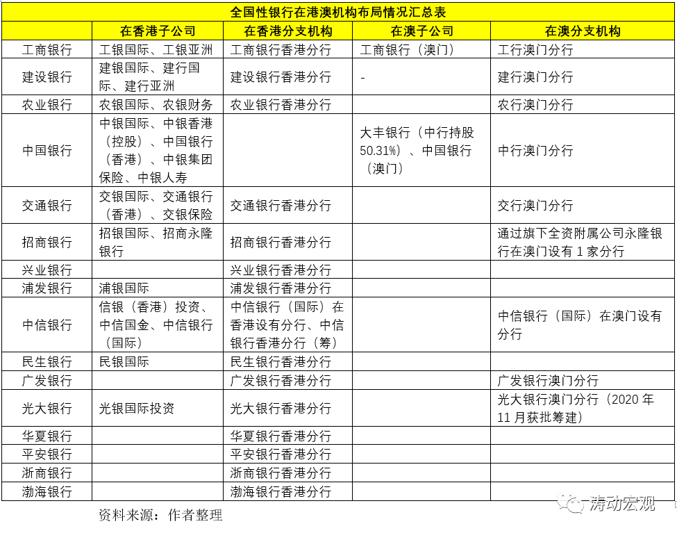 3、五家銀行直接設立在澳設立分行,招行與中信銀行通過附屬機構布局