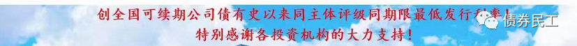 7、強調全國范圍+特定時間+特定債券品種+特定評級+特定期限最低發行利率的海報,比如發行利率創全國、可續期公司債券、有史以來、同主體評級、同期限利率新低。